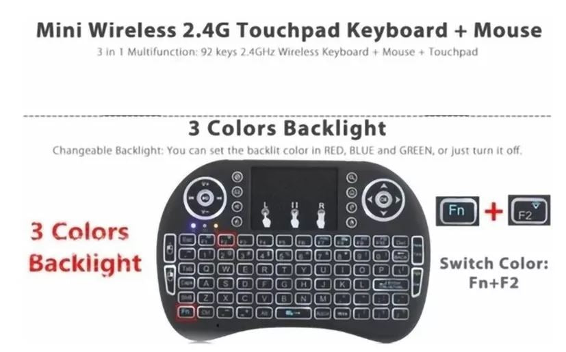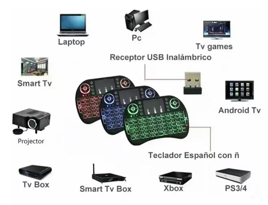 Mini Teclado Inalambrico Touchpad Iluminado Smart Tv Box con letra Ñ